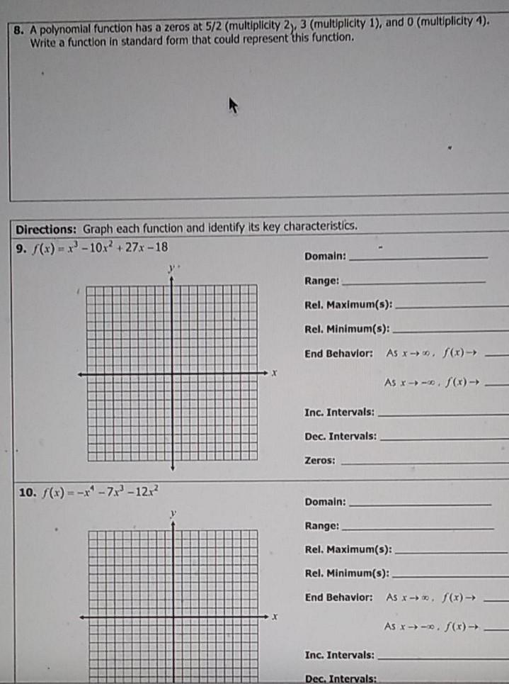 Solved Name Unit 5 Polynomial Functions Date Bell Chegg Com