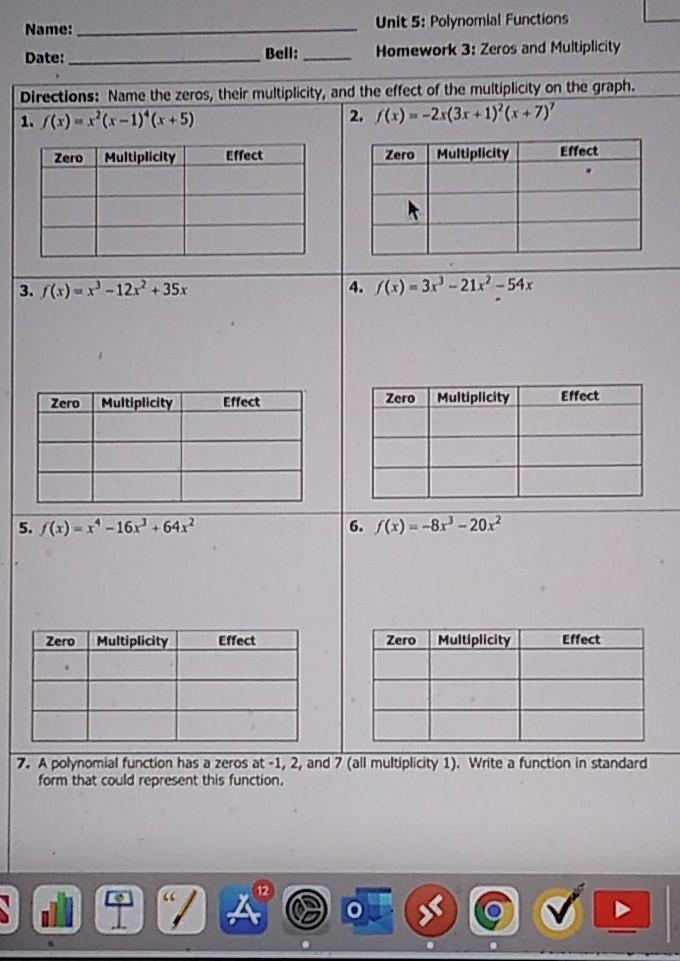 Unit 5 Hwk 3 Zeros And Multiplicity Youtube